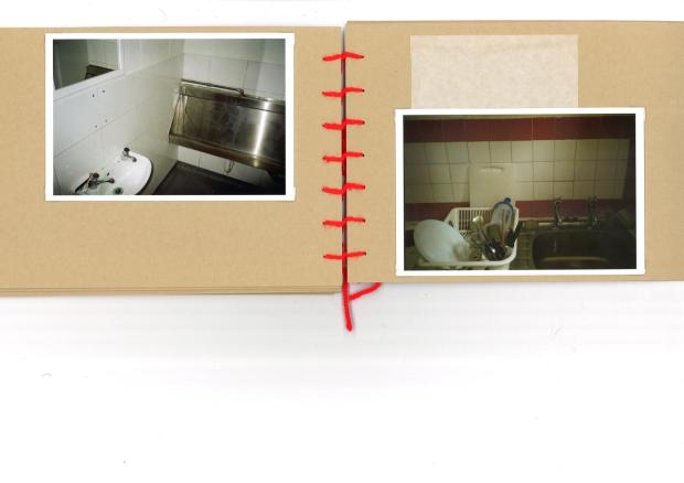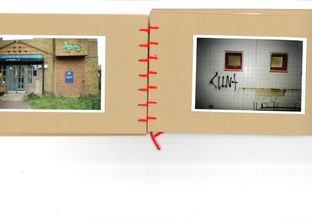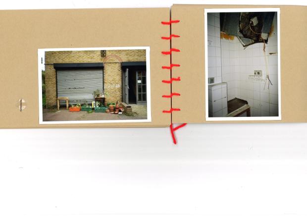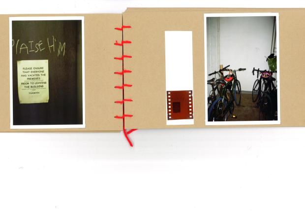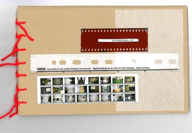 64 speedwell street, 35 mm film photographs in a hand stitched book made from archive standard card, with negatives, paper clips and dry mounting paper, 20 x 15 cm, 2024.