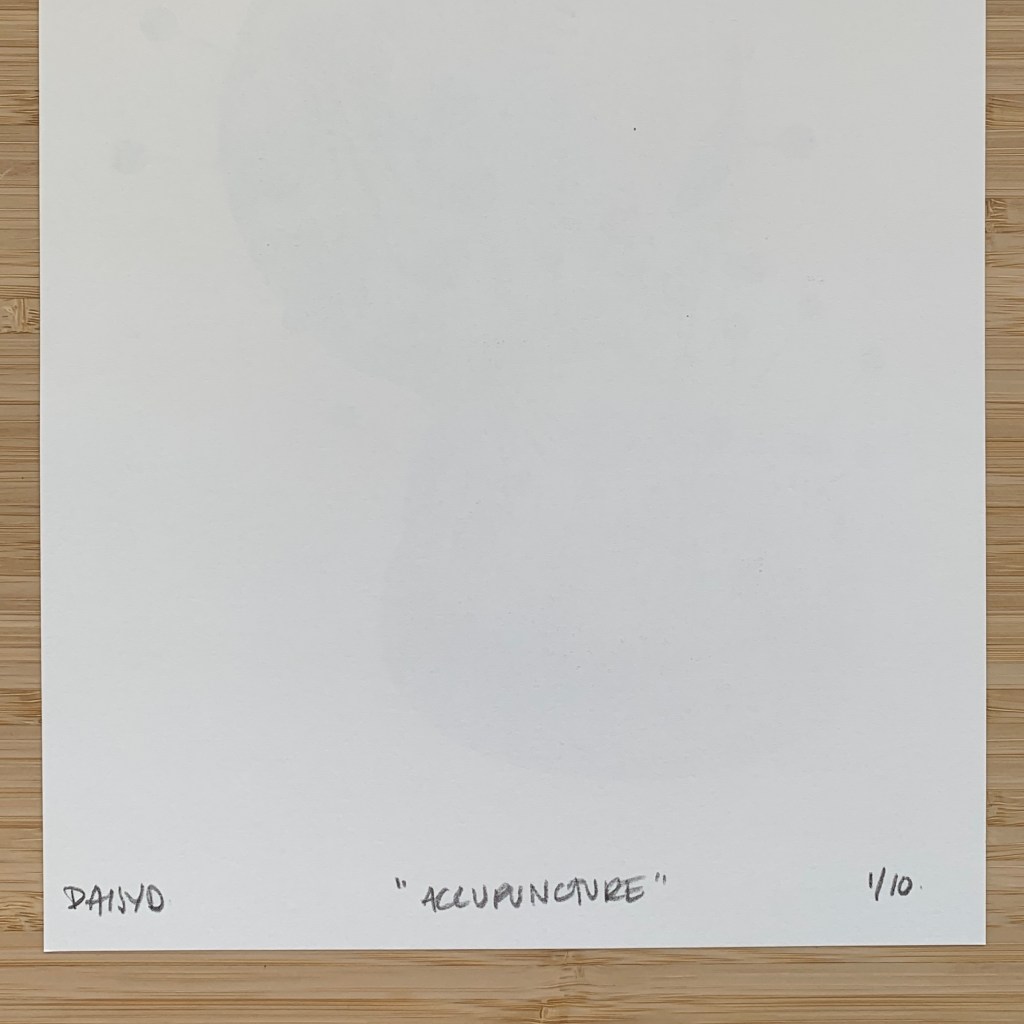 Accupuncture, Risograph print, 20 x 30 cm, edition of 10 on white paper, edition of 10 on off-white paper, 2024.