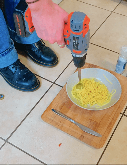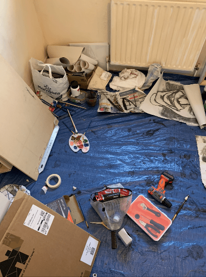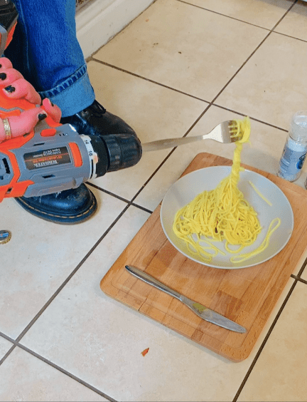 Both of these elements, the functionality of tools videos, and the artistic responses due to studios being closed, felt almost synonymous with each other throughout my process. With adapting to fulfilling requirements of my course without access to the studio, I found myself questioning the functionality of spaces, and this transferred across to the tools videos; manifesting this idea in quite a hilarious way. Moreover, I found myself using a spare bedroom and the library as a “studio”, which goes completely against the function that these spaces were designed to fulfil; similar to how a drill may be used to eat spaghetti, even though it was never designed to be used in this manner.