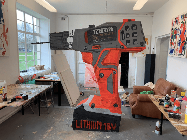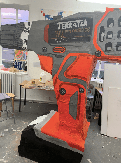 Following the exploration of functionality in tools, I started questioning how these video pieces function as art, and thinking further about conceptual processes and the absurdist nature of trying to put meaning behind an art piece, within the chaos and non-meaning of human existence. Additionally, I had gained a slight reputation of using drills in my practice (amongst my cohort) and so I wanted to push the boundaries of my previous ideas further, in making a giant drill sculpture; to finalise this theme involving drills.