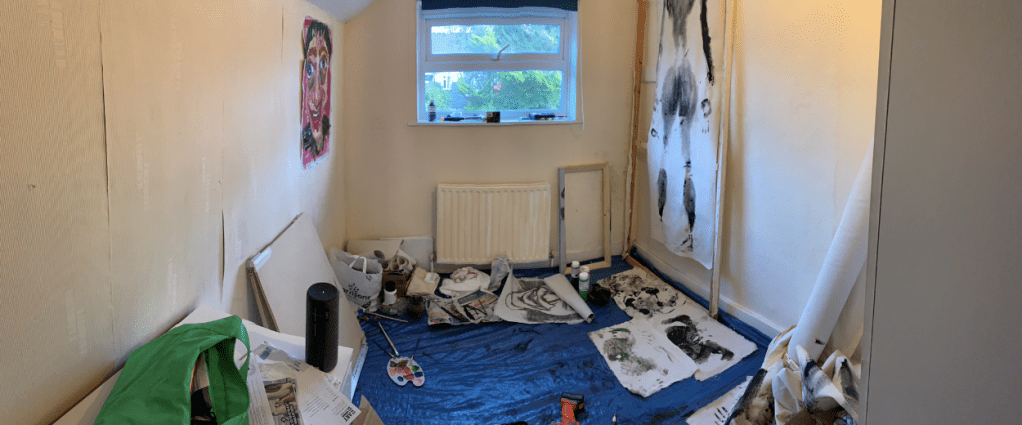 Spare bedroom in a student house functioning as a studio, shared with another student.