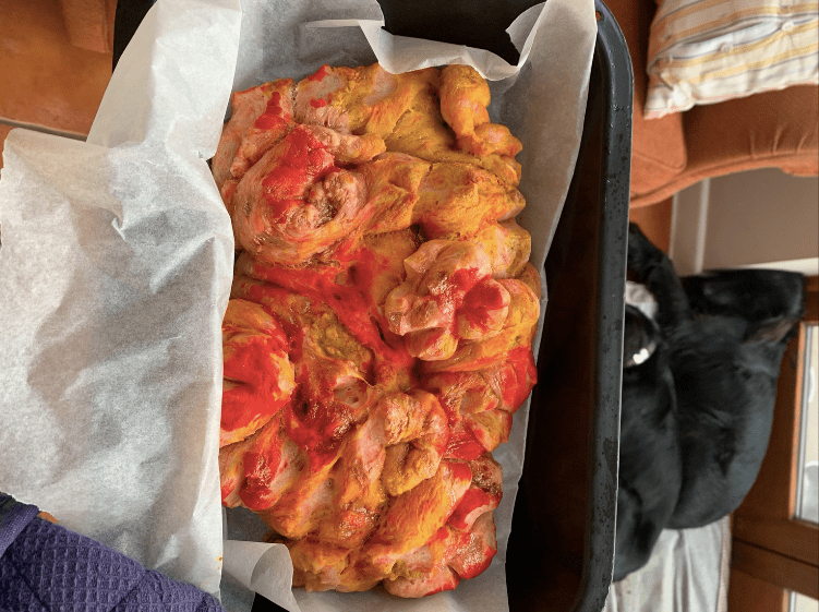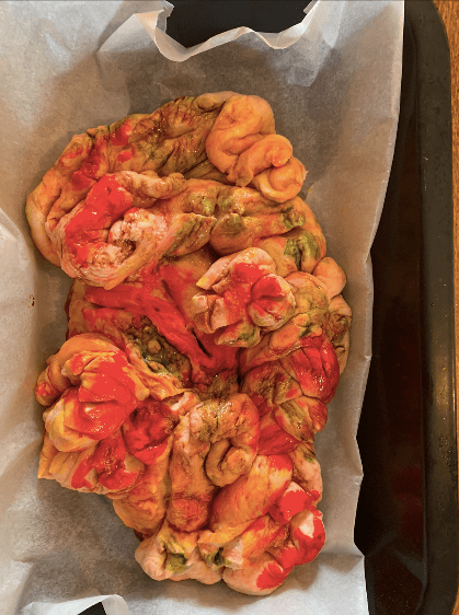 A session in which bread was made into a sculptural object, with use of wire, food colouring, and various twisting and building techniques.