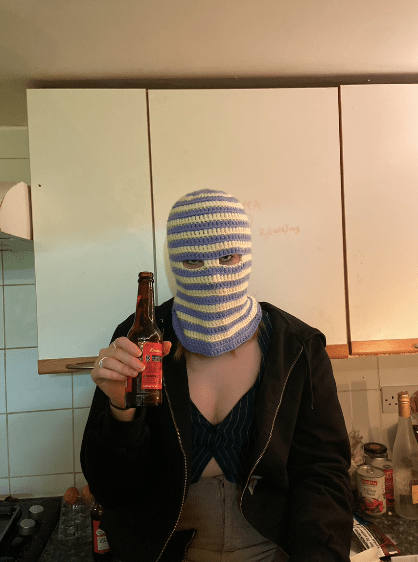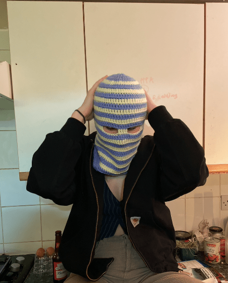 In considering the future of fashion, I chose to focus on this theme of face covering, in making crochet balaclavas, as well as digital collages to visualise the potentials of accessorising around a covered face.