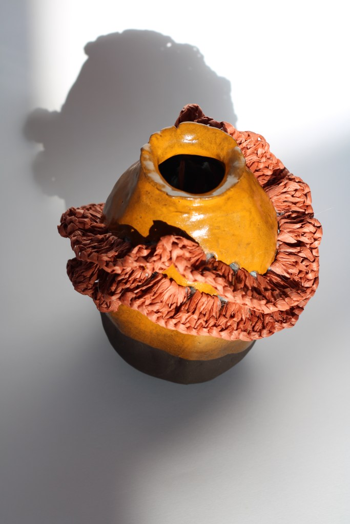 Black Vulcan, stoneware glaze, raffia string